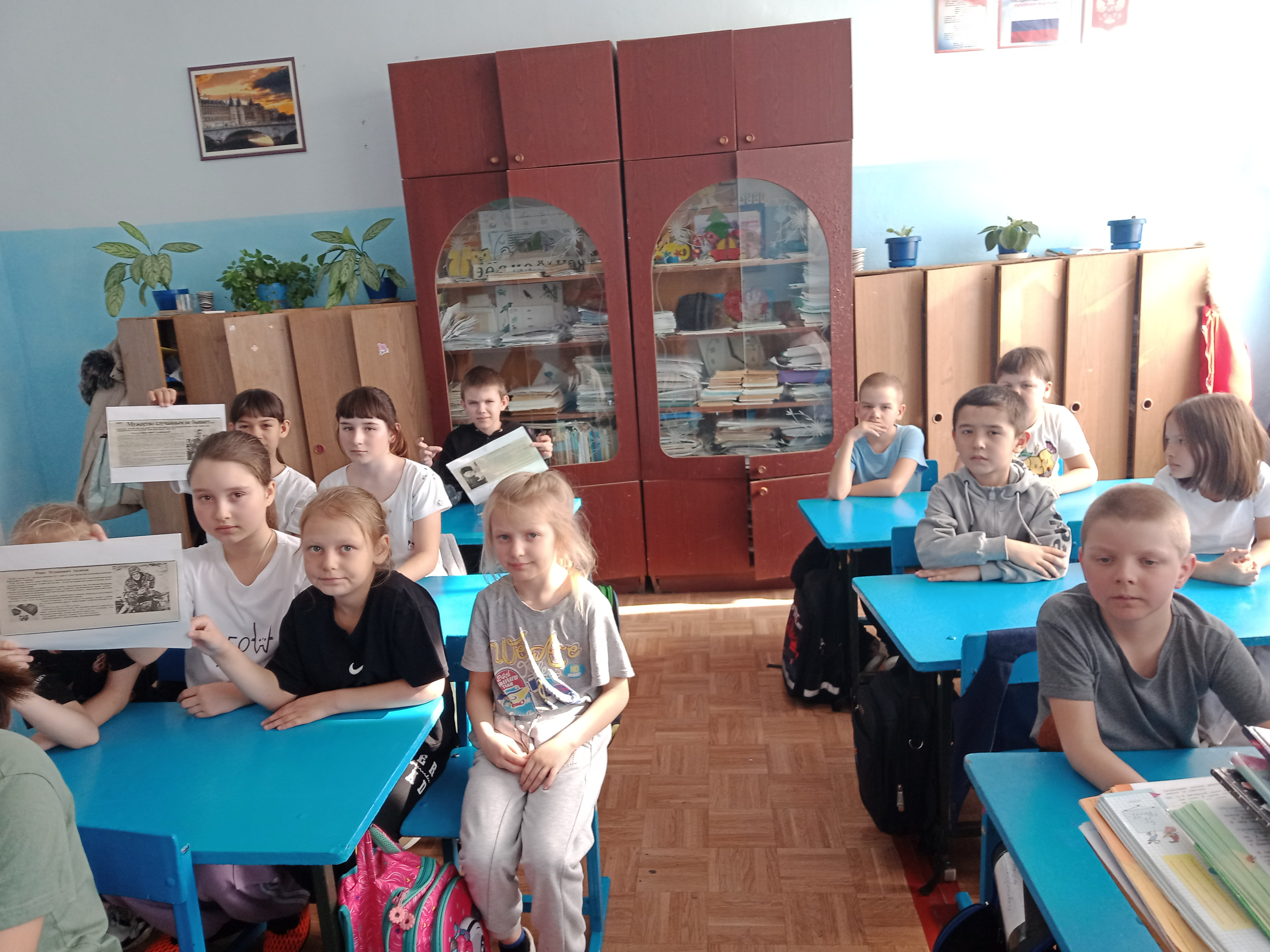В 5-7 классах состоялась литературная гостиная «Поэты - фронтовики». Учитель познакомил ребят с литераторами военного времени, которые правдиво описали в своих произведениях атмосферу фронта, партизанское движение, тяжесть походов и жизнь в тылу, крепкую солдатскую дружбу, отчаянный героизм.